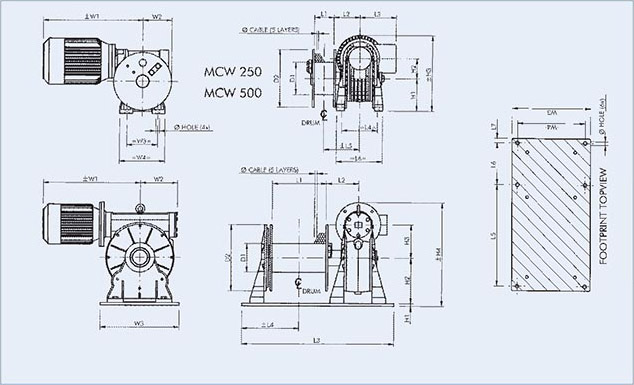 一种自制动涡轮式绞车,专门为最高至2200公斤的重型牵引和移动工作而开发。由于具有自制动涡轮,绞车适合在斜坡上进行牵引工作。当需要精确地定位或重复进行重达2000公斤的操作时,也可以选择加装一个制动器。MCW系列产品经常被用于排列火车车厢,将没有发动机的汽车或卡车放入维修车间或牵引新伐的树木。该款绞车可以100%的连续使用并达到有效数据。我们建议使用带三相电机的型号以便在悬挂重物时保证设备的良好运行。